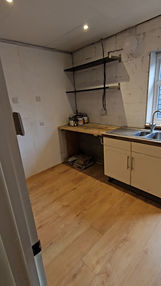 - House extensions & loft conversions - Kitchen refurbishments (cabinets, flooring, tiling) - Bathroom updates (toilets, showers, sinks, tiling) - Custom wardrobes & storage solutions - Ceiling installation & staircase construction - Interior painting, decorating & plastering - Wallpaper removal & wall finishing